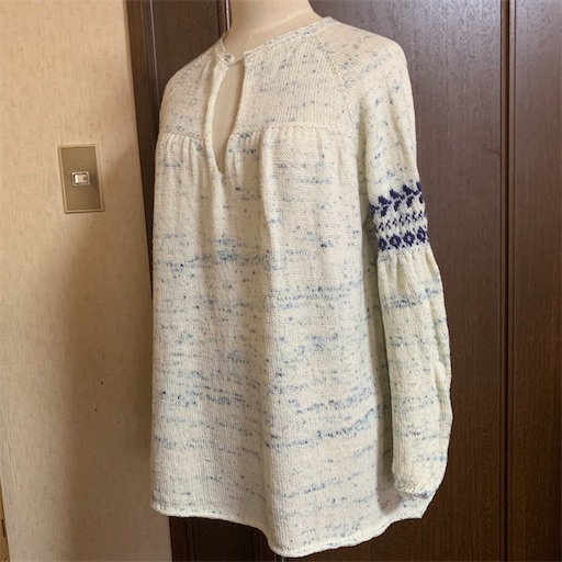 身頃さえ頑張って編めば、袖の編み込みは少しだし、パフっぽくなっているので完成までは早いです。